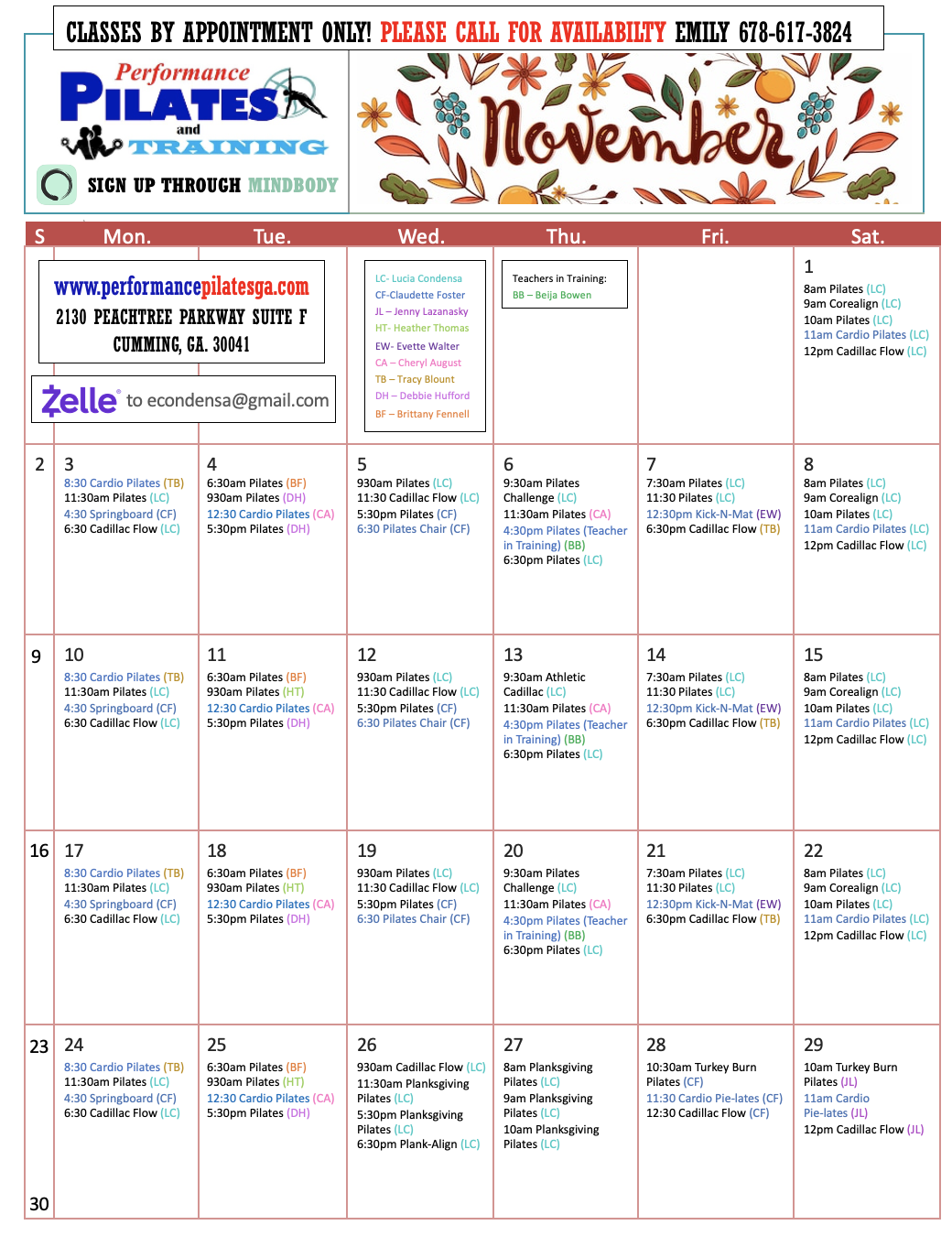 Download Mindbody App - Create an account - Find Performance Pilates - See our entire class schedule and sign up for a class!