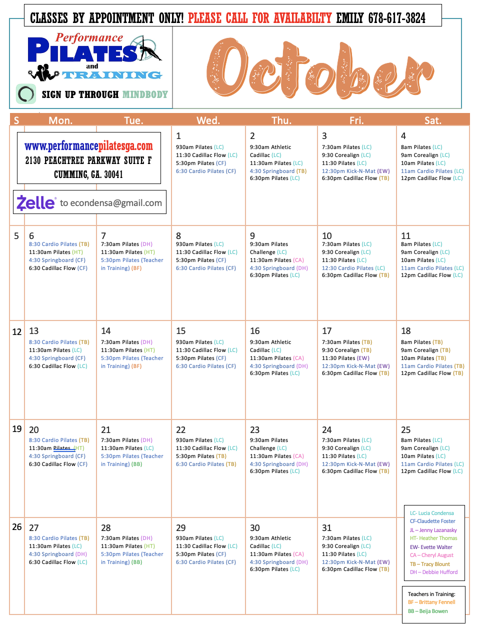 Download Mindbody App - Create an account - Find Performance Pilates - See our entire class schedule and sign up for a class!